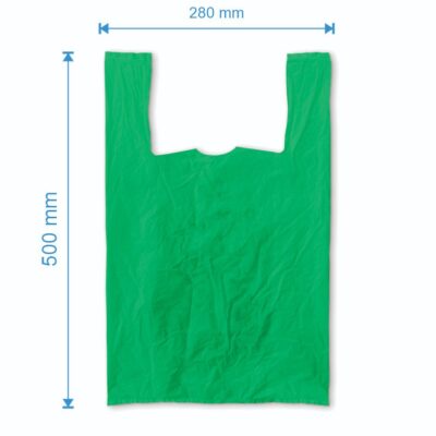 Sacosa maieu 280mm x 500mm - 50 microni grosime, cu pliuri de 70mm, reciclat, culoarea verde