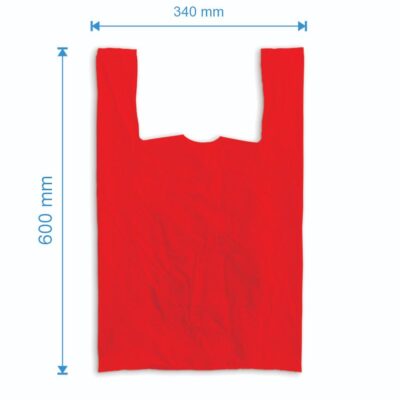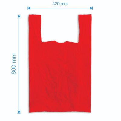 Sacosa maieu 320mm x 600mm - 50 microni grosime, cu pliuri de 90mm, reciclat, culoarea rosu