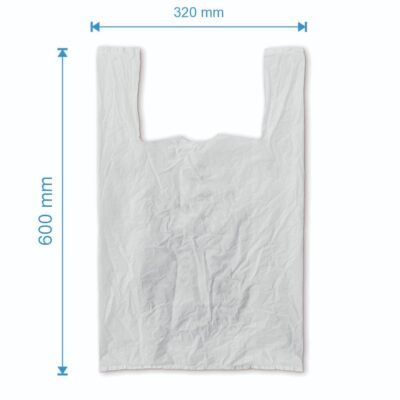 Sacosa maieu 320mm x 600mm - 50 microni grosime, cu pliuri de 90mm, reciclat, culoarea alb