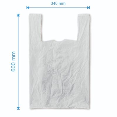 Sacosa maieu 340mm x 600mm - 50 microni grosime, cu pliuri de 100mm, reciclat, culoarea alb