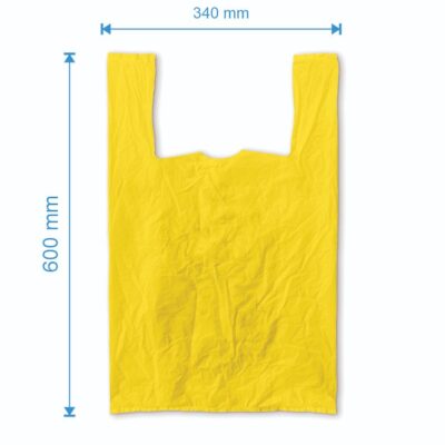 Sacosa maieu 340mm x 600mm - 50 microni grosime, cu pliuri de 100mm, reciclat, culoarea galbenă