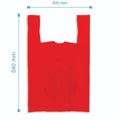Sacosa maieu 300mm x 540mm - 50 microni grosime, cu pliuri de 80mm, reciclat, culoarea rosu