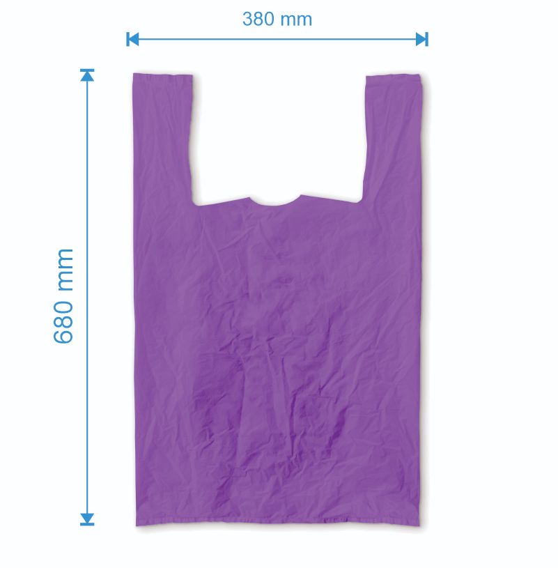 | Descriere produs Sacoșă tip Maieu 380mm x 680mm, Mov, Grosime 50 microni, Fabricată din Material Virgin |